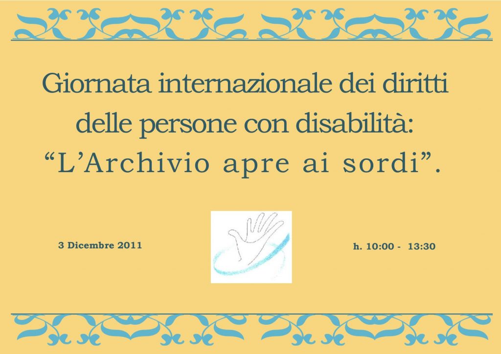 L’Archivio di Stato di Nuoro, in collaborazione con la sezione provinciale di Nuoro dell’ENS, Ente nazionale per la protezione e l’assistenza dei sordi, presenterà il patrimonio documentario e la sua funzionalità, supportato da un interprete in lingua LIS. Seguirà una conversazione sulle problematiche che i sordi incontrano nella fruizione dei beni culturali e nella quotidianità.