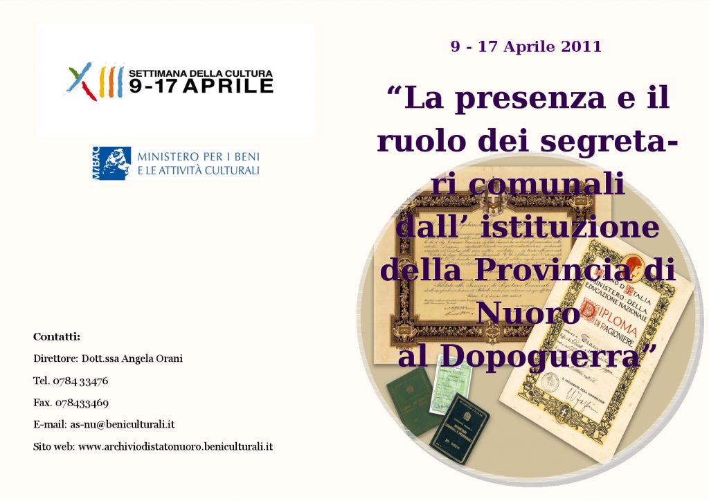 Acquisiti di recente, si conservano presso l’Archivio di Stato di Nuoro i fascicoli personali dei segretari comunali dall’istituzione della Provincia di Nuoro al Dopoguerra. L’excursus, attraverso i numerosi documenti originali, evidenzia il loro importante ruolo: da “forza motrice” del comune a controllori dell’applicazione delle leggi dello Stato.