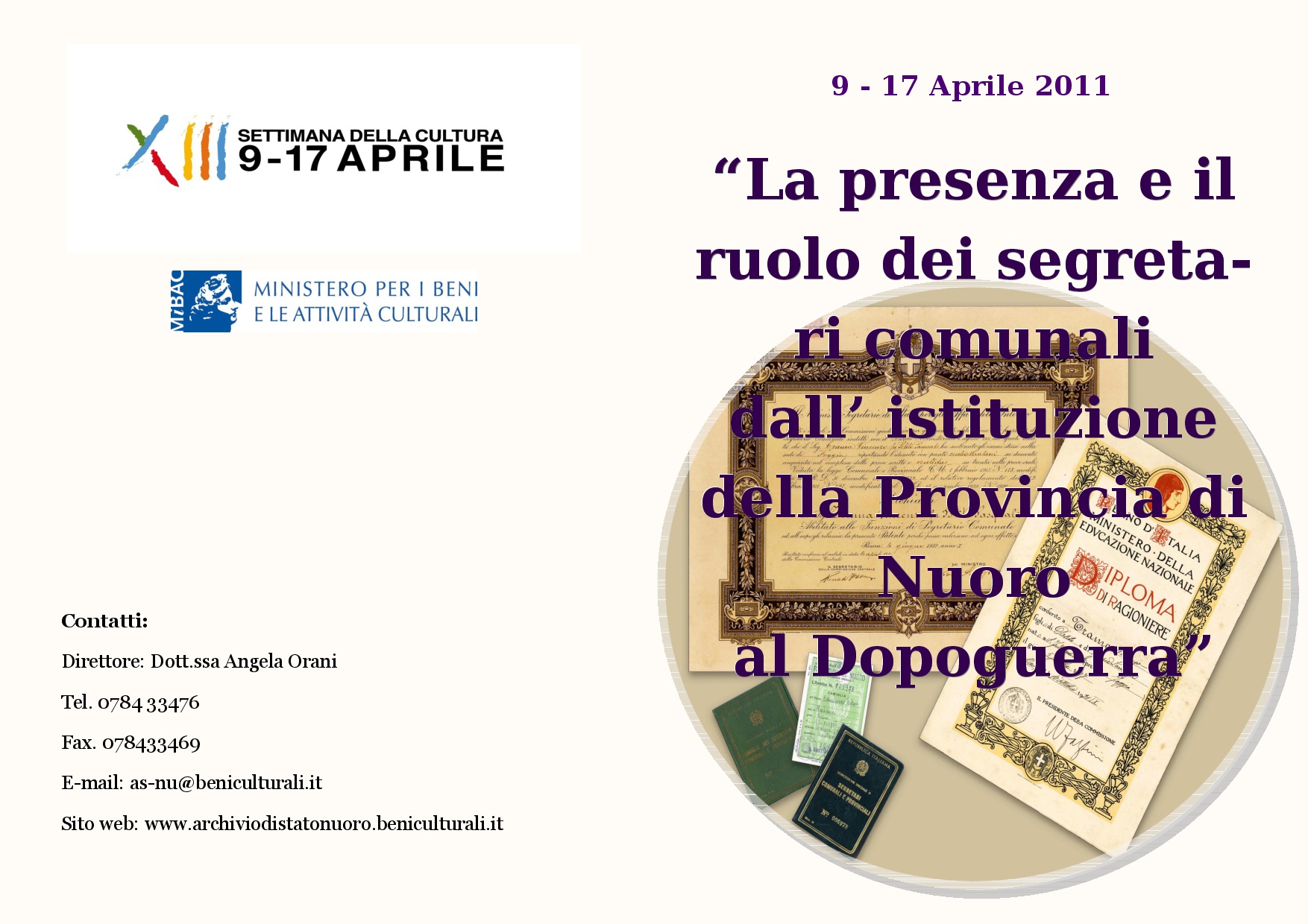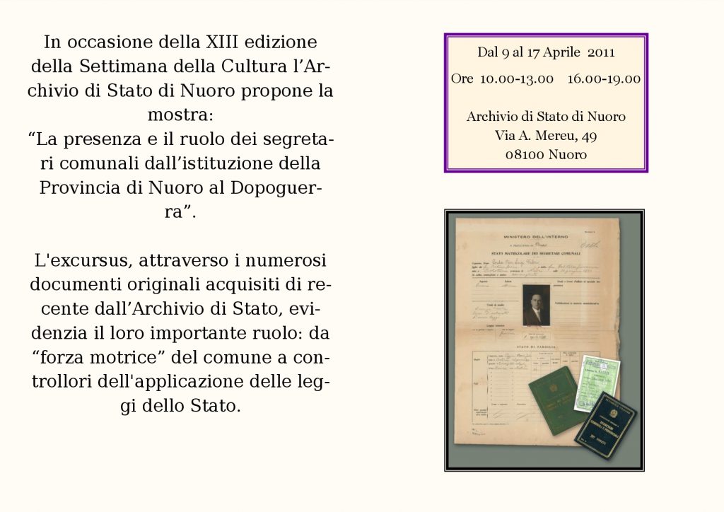 Mostra documentaria: “La presenza e il ruolo dei segretari comunali dall’istituzione della Provincia di Nuoro al Dopoguerra”