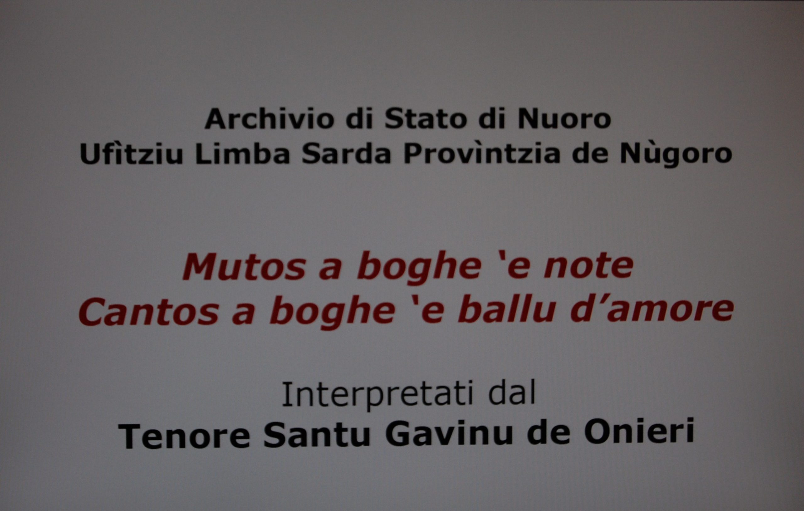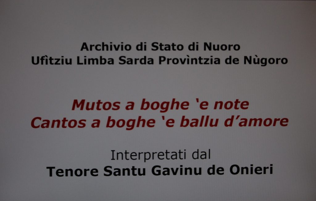 L’Archivio di Stato, in collaborazione con l’ Ufficio Lingua Sarda della Provincia di Nuoro ospita nella giornata del 27 Febbraio 2010 alle ore 10:30, i Tenore San Gavino di Oniferi (i fratelli Francesco, Giovanni e Carmelo Pirisi, rispettivamente boche, contra e mesu boche, e Raimondo Pidia, bassu) Un occasione speciale per conoscere il canto usato in Sardegna sia dall’ uomo sia dalla donna per dichiarare il proprio amore.